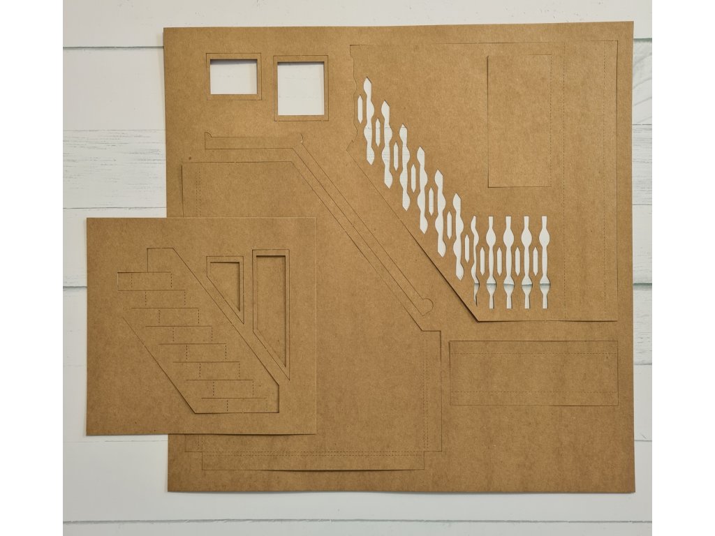Jsou laserem vyřezány z kraft papíru 170 gsm. Jednotlivé části jsou pár body spojeny, doporučujeme je oddělit pomocé nožíku nebo nůžek. Papír je velmi pecvný a ruční utrhnutí by je mohlo poškodit.