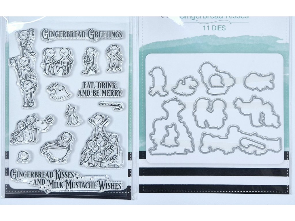 LDRS Creative - GINGERBREAD KISSES / perníček - silikonová razítka + navazující vyřezávací šablony