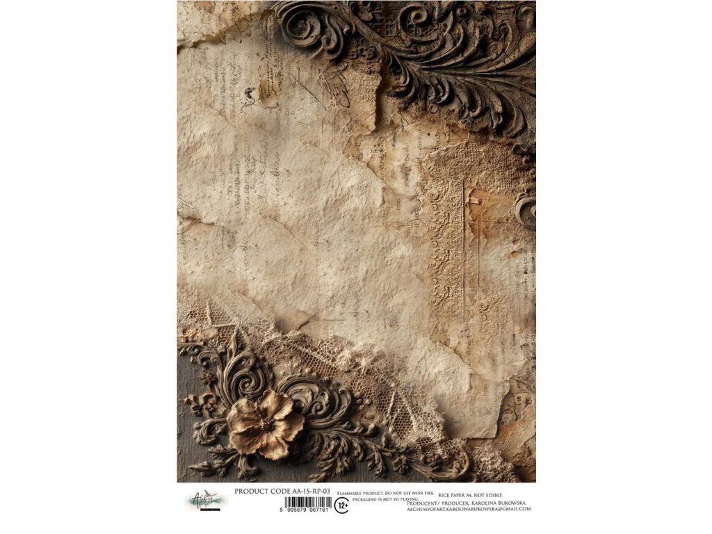 Jemný rýžový papír ve formátu A4, ideální pro techniku decoupage a další kreativní projekty. Díky své nízké gramáži se velmi dobře přizpůsobí povrchu a po nalepení téměř splývá s podkladem.