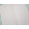 Sešit je velký 11 x 21 cm; gramáž 120 gr/m2; 20 listů / 40 linkovaných stránek.