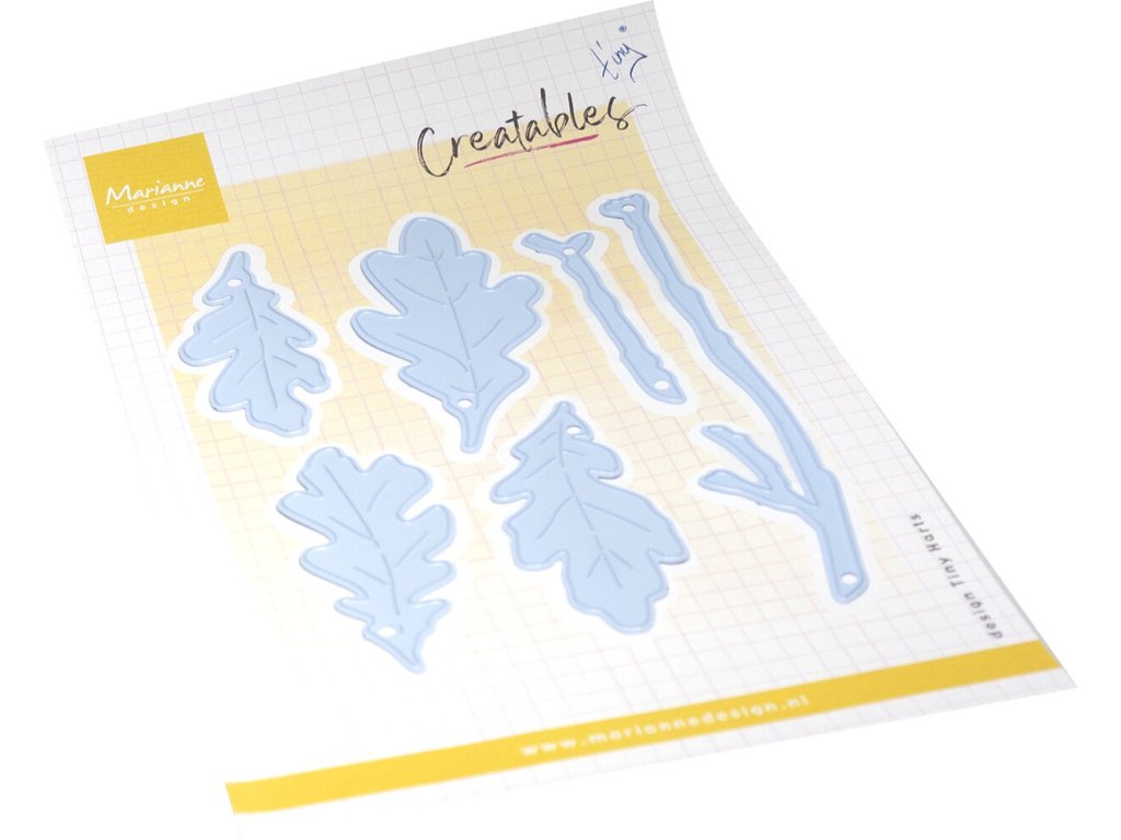 Kovová řezací šablona Tiny's Oak Branches z kolekce Creatables od Marianne Design přináší detailní motiv dubových větviček s listy a žaludy. Ideální pro podzimní, přírodní i rustikální projekty. Dodá autentický a jemný vzhled přáníčkům, scrapbookovým stránkám nebo 3D dekoracím.