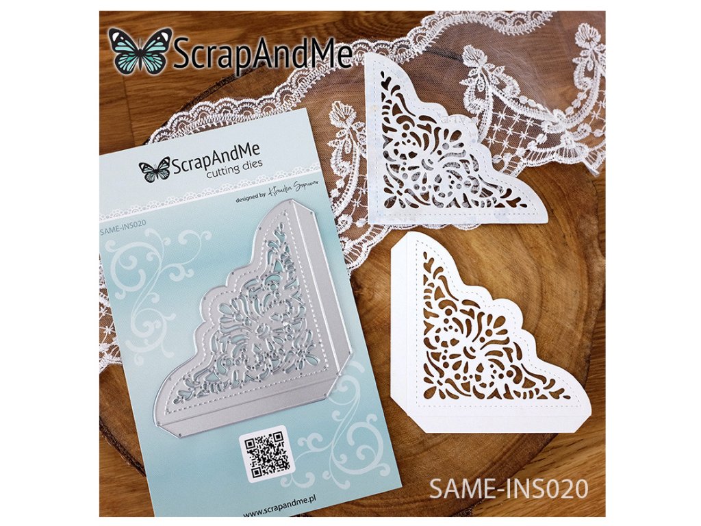 ScrapAndMe - krajková rohová kapsa 9,5 x 9,5 cm - kovová vyřezávací šablona