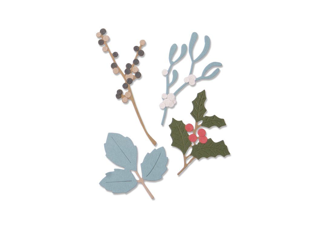 Sizzix / Thinlits - WINTER LEAVES / 663425 - vánoční vyřezávací šablony